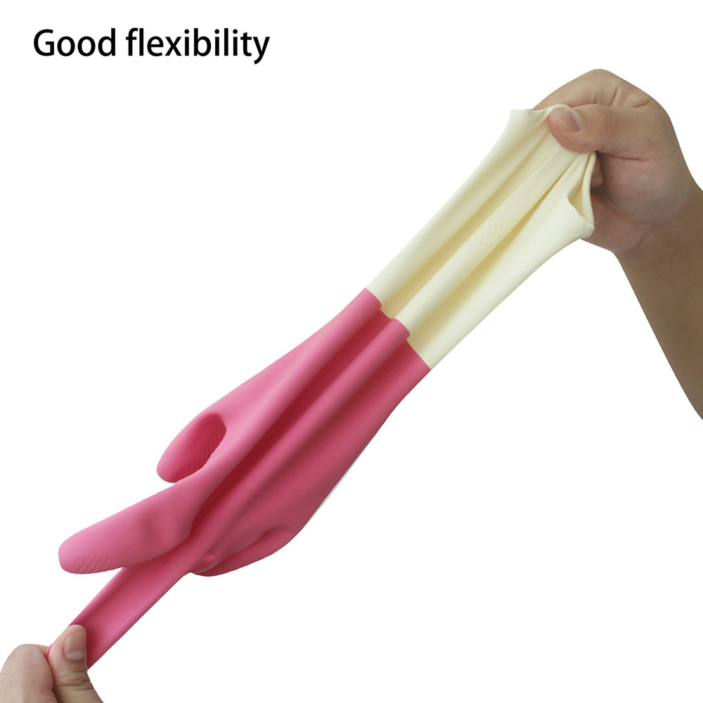 DURABLE MATERIALS - The reusable household gloves are made of environmental grade latex material, green and odorless. It is waterproof and resistant to low concentration oil grease and light solvent. The extended transparent cuffs provide effective barrier protection for wrist and forearm from moisture and some corrosive liquids.